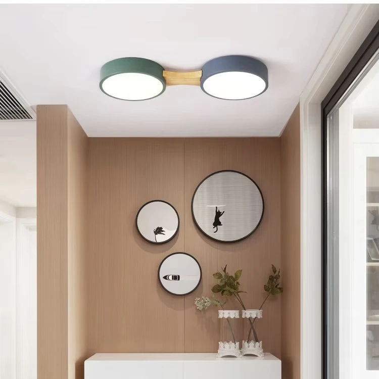 Macaron Nordic Modern Style Round Ceiling Lamp AC Powered for Children's Bedroom Living Room LED Studio Tricolor Ceiling Light